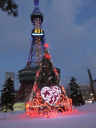 テレビ塔がデカすぎて、うまく画面に納まり切らなかったが・・ このハートのイルミネーションがやけにキレイに見えたので、 思わず、写真に納めました。笑 テレビ塔の下に灰皿があってタバコを加えましたが。 元旦の1月1日は、テレビ塔も正月休みらしい。 …